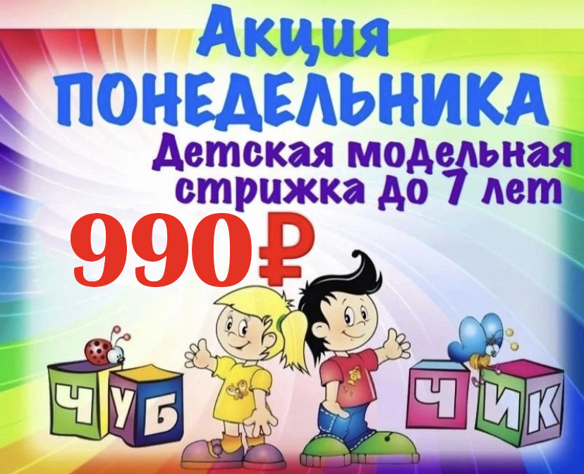Каждый понедельник модельная стрижка для детей до 7 лет всего по 990 рублей!*