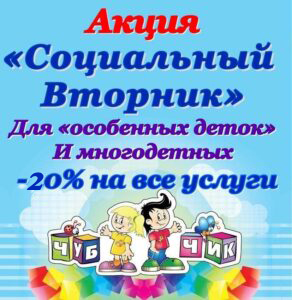 Каждый вторник, детям с ограниченными физическими возможностями и многодетным, дарим скидку 20% на все* услуги.